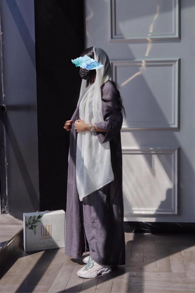 عباية باللون الرمادي.مريحة وعملية.مناسبة للعمل والمهام اليومي.بالإضافة إلى طرحة من قماش البوال الياباني الأصلي باللون السكري بطول قرابة 190 سم.